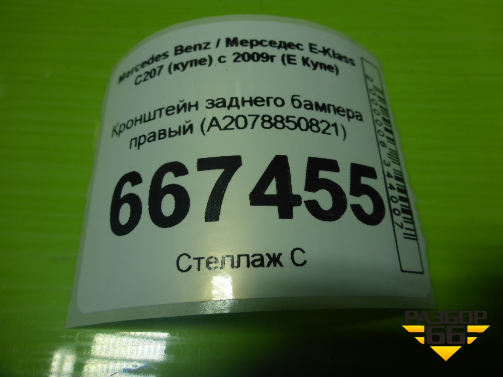 Кронштейн заднего бампера правый (боковой) (A2078850821) для Mercedes Benz E-Klass C207 (купе) с 2009г (Е Купе) в Перми