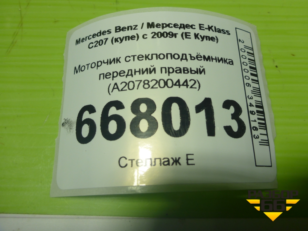 Моторчик стеклоподъёмника передний правый (A2078200442) для Mercedes Benz E-Klass C207 (купе) с 2009г (Е Купе) в Перми