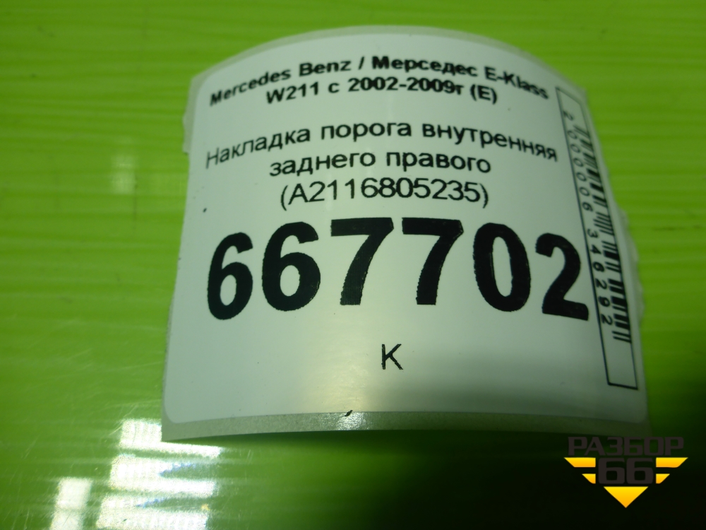 Накладка порога внутренняя заднего правого (A2116805235) для Mercedes Benz E-Klass W211 c 2002-2009г (Е) в Перми