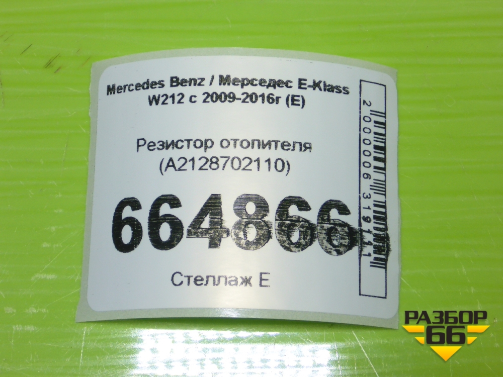 Резистор отопителя (A2128702110) для Mercedes Benz E-Klass W212 с 2009-2016г (Е) в Перми