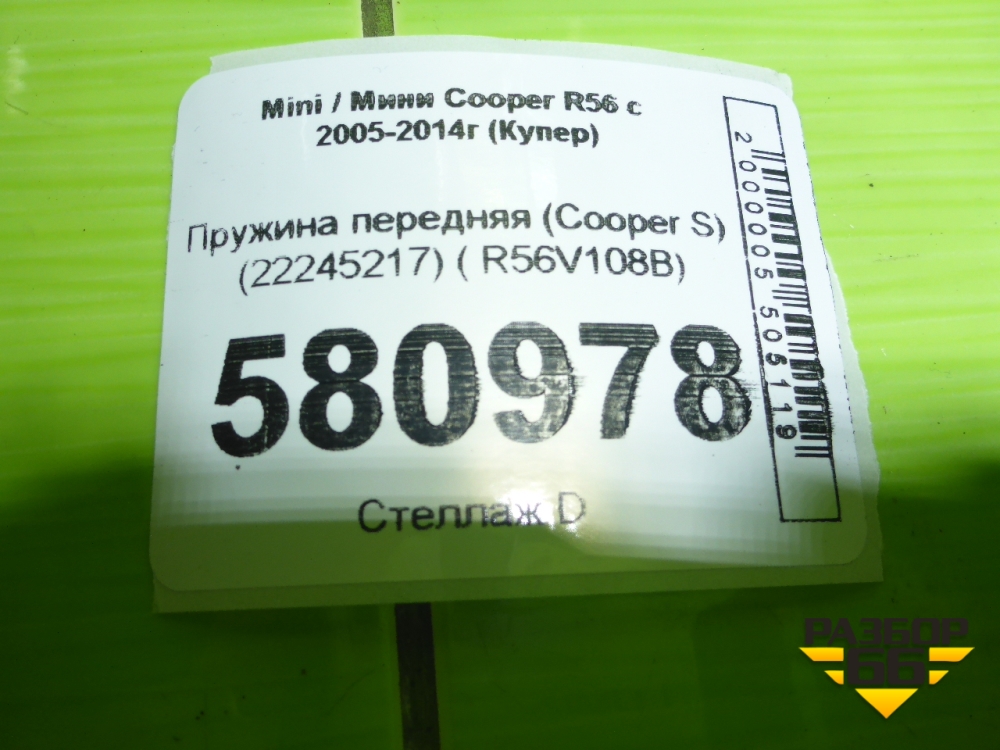Пружина передняя (Cooper S) (22245217) ( R56V108B) для Mini Cooper R56 с 2005-2014г (Купер) в Перми