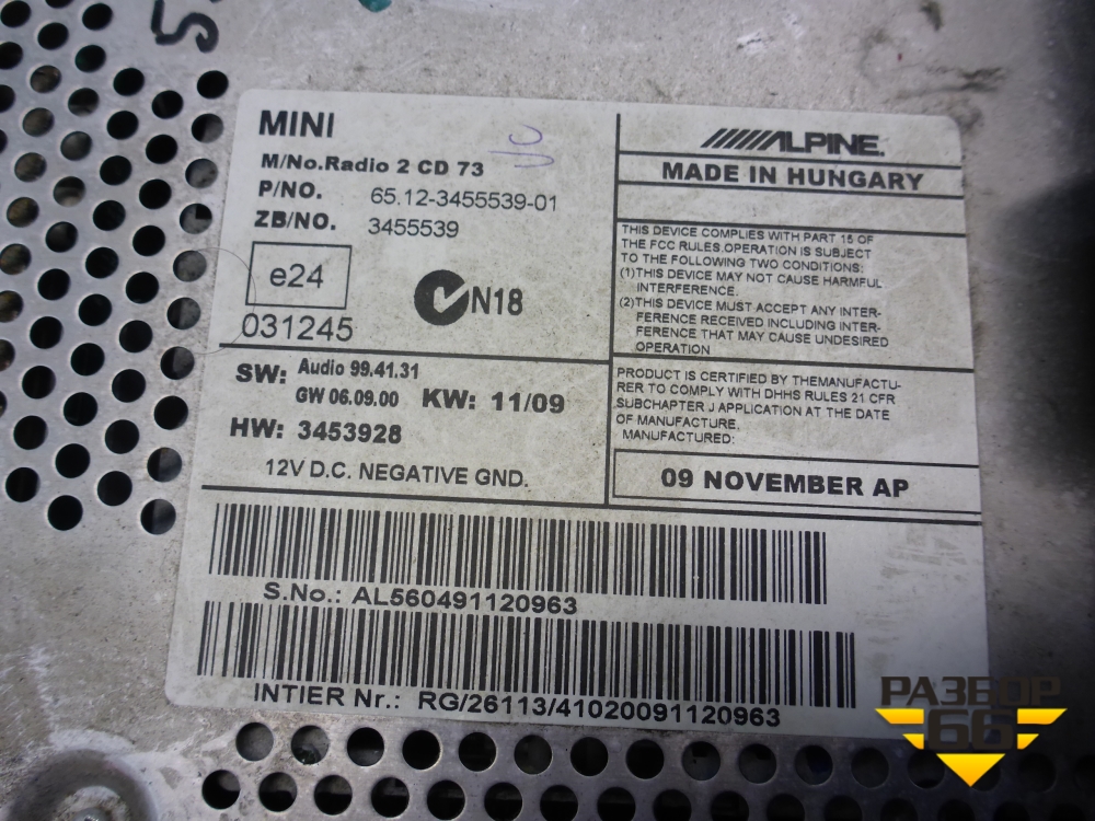 Проигрыватель CD/DVD чейнджер (65123455539) для Mini Cooper R56 с 2005-2014г (Купер) в Перми