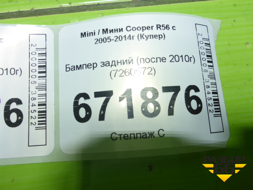 Бампер задний (после 2010г) (7260572) для Mini Cooper R56 с 2005-2014г (Купер) в Перми