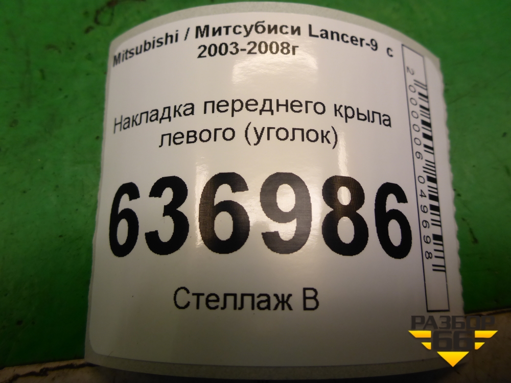 Накладка переднего крыла левого (уголок) (MR462051) для Mitsubishi Lancer-9 с 2003-2008г (Лансер) в Перми