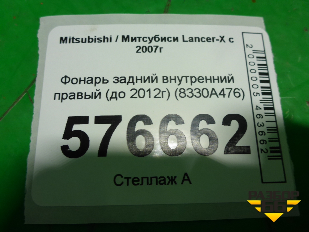 Фонарь задний внутренний правый (до 2012г седан) (8330A476) для Mitsubishi Lancer-X с 2007г (Лансер) в Перми
