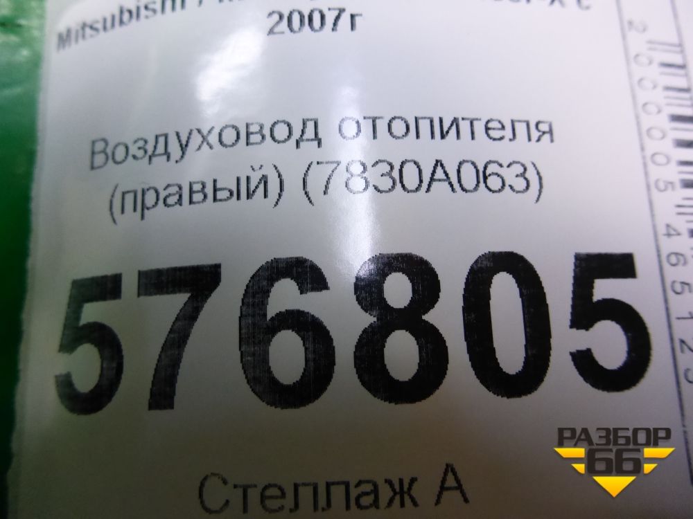 Воздуховод отопителя (правый) (7830A063) для Mitsubishi Lancer-X с 2007г (Лансер) в Перми