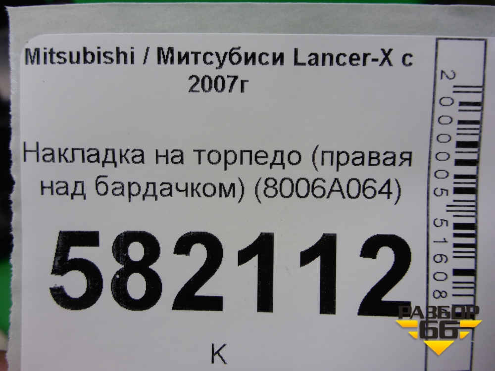 Накладка на торпедо (правая над бардачком) (8006A064) для Mitsubishi Lancer-X с 2007г (Лансер) в Перми