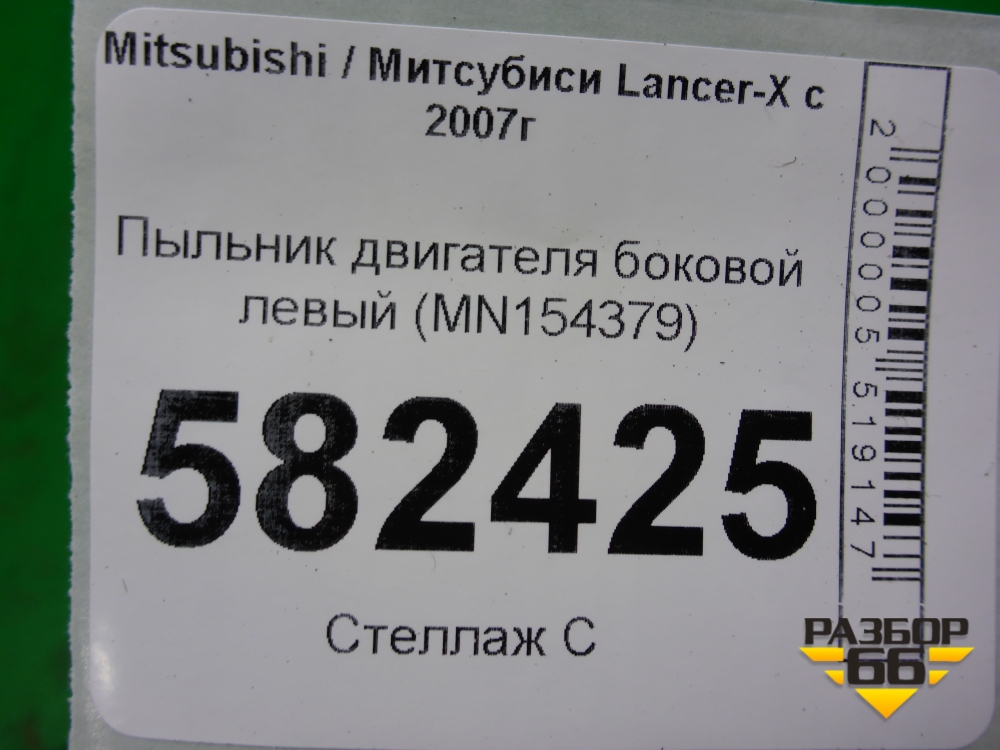 Пыльник двигателя боковой левый (MN154379) для Mitsubishi Lancer-X с 2007г (Лансер) в Перми