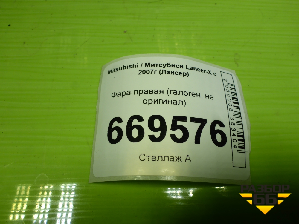 Фара правая (галоген, не оригинал) для Mitsubishi Lancer-X с 2007г (Лансер) в Перми