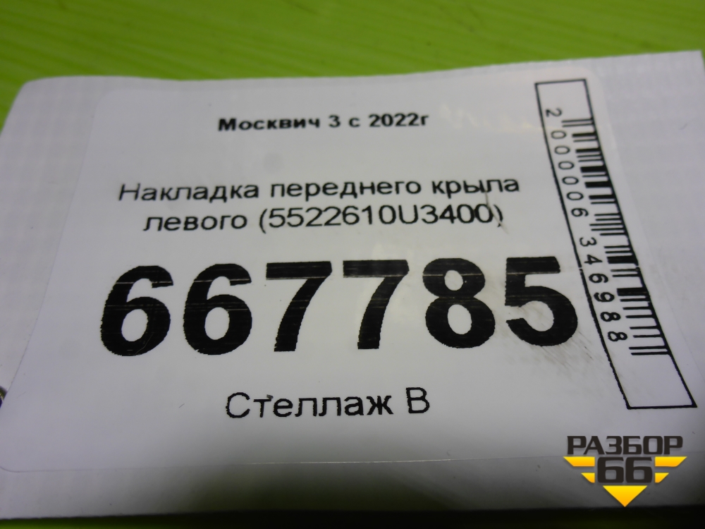 Накладка переднего крыла левого (5522610U3400) для Москвич 3 с 2022г в Перми
