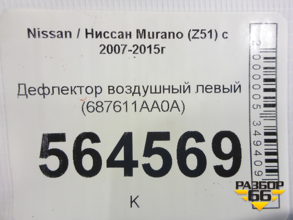 Дефлектор воздушный левый (687611AA0A) для Nissan Murano (Z51) с 2007-2015г (Мурано) в Перми