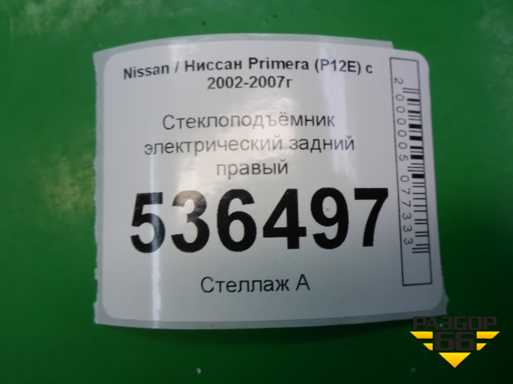 Стеклоподъёмник электрический задний правый для Nissan Primera (P12E) с 2001-2008г (Примера) в Перми