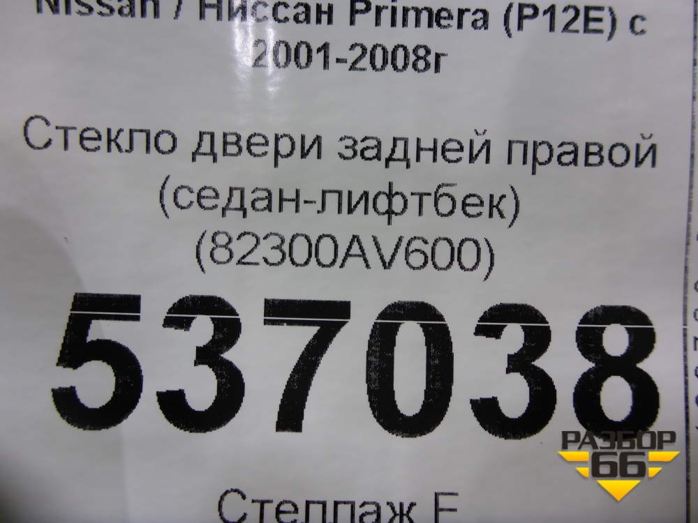 Стекло двери задней правой (седан-лифтбек) (82300AV600) для Nissan Primera (P12E) с 2001-2008г (Примера) в Перми