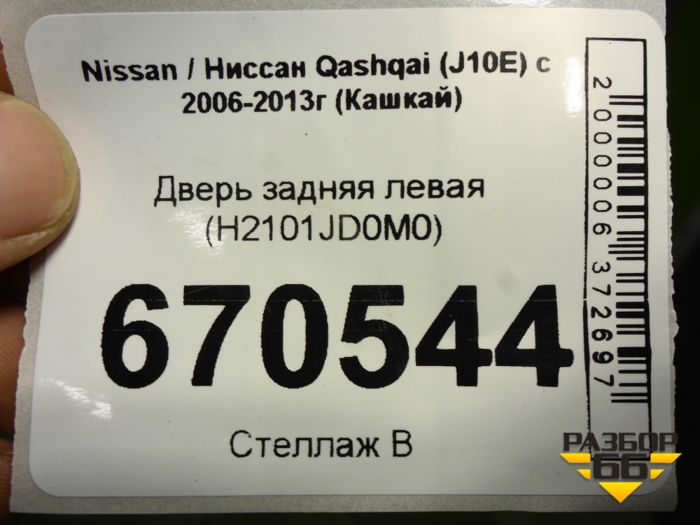 Дверь задняя левая (H2101JD0M0) для Nissan Qashqai (J10E) с 2006-2013г (Кашкай) в Перми