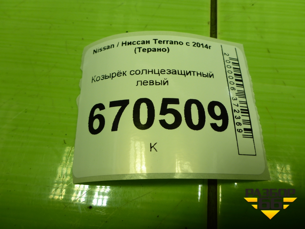 Козырёк солнцезащитный левый для Nissan Terrano с 2014г (Терано) в Перми