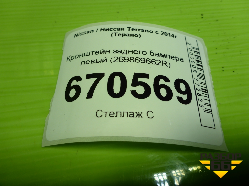 Кронштейн ПТФ левый (269869662R) для Nissan Terrano с 2014г (Терано) в Перми