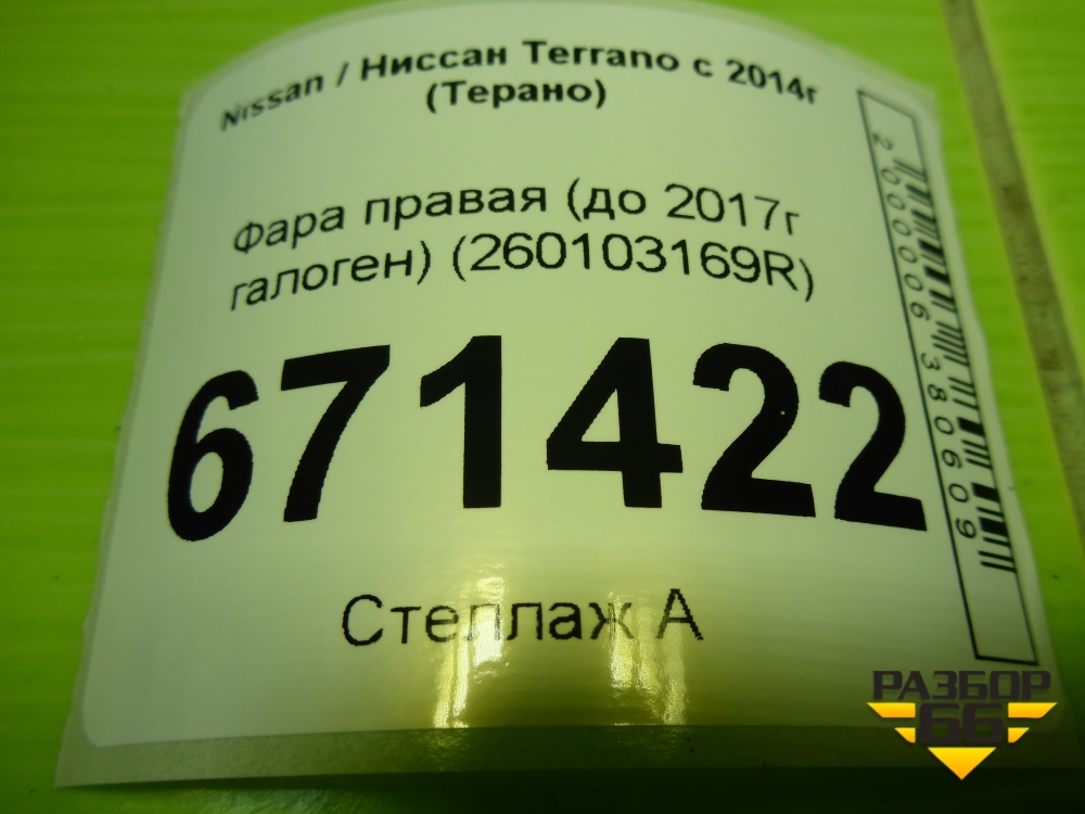 Фара правая (до 2017г галоген) (260103169R) для Nissan Terrano с 2014г (Терано) в Перми