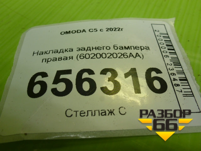 Накладка заднего бампера правая (602002026AA) для OMODA C5 с 2022г (Ц5) в Перми