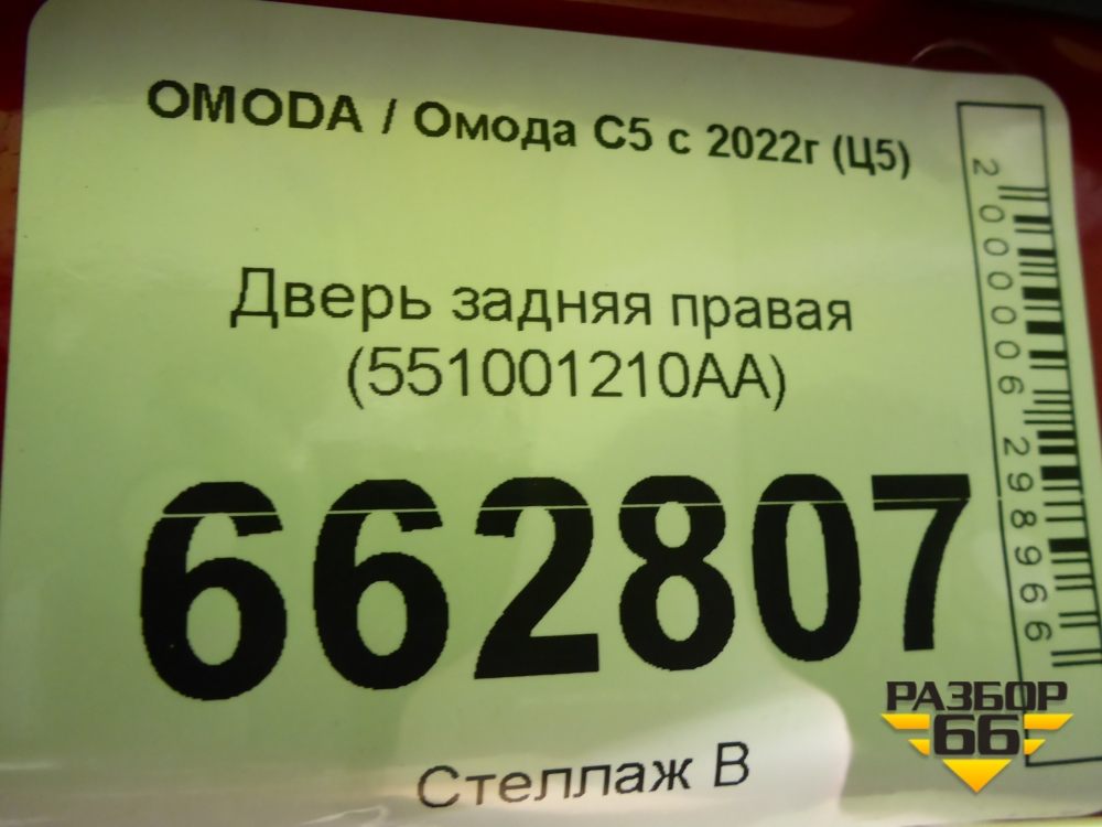 Дверь задняя правая (551001210AA) для OMODA C5 с 2022г (Ц5) в Перми
