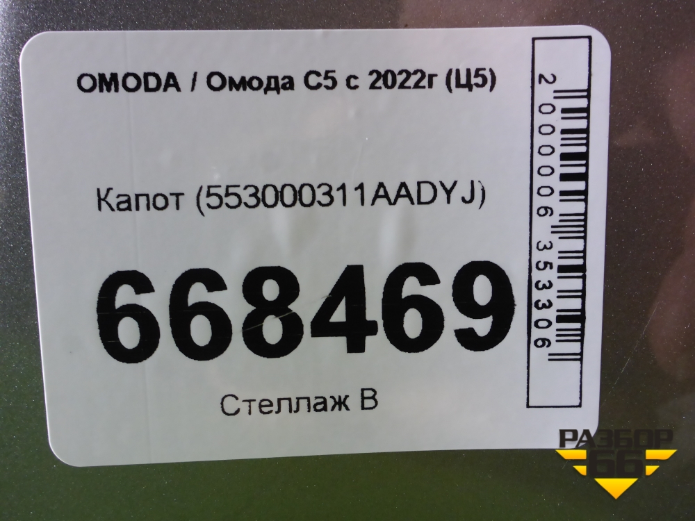 Капот (553000311AADYJ) для OMODA C5 с 2022г (Ц5) в Перми