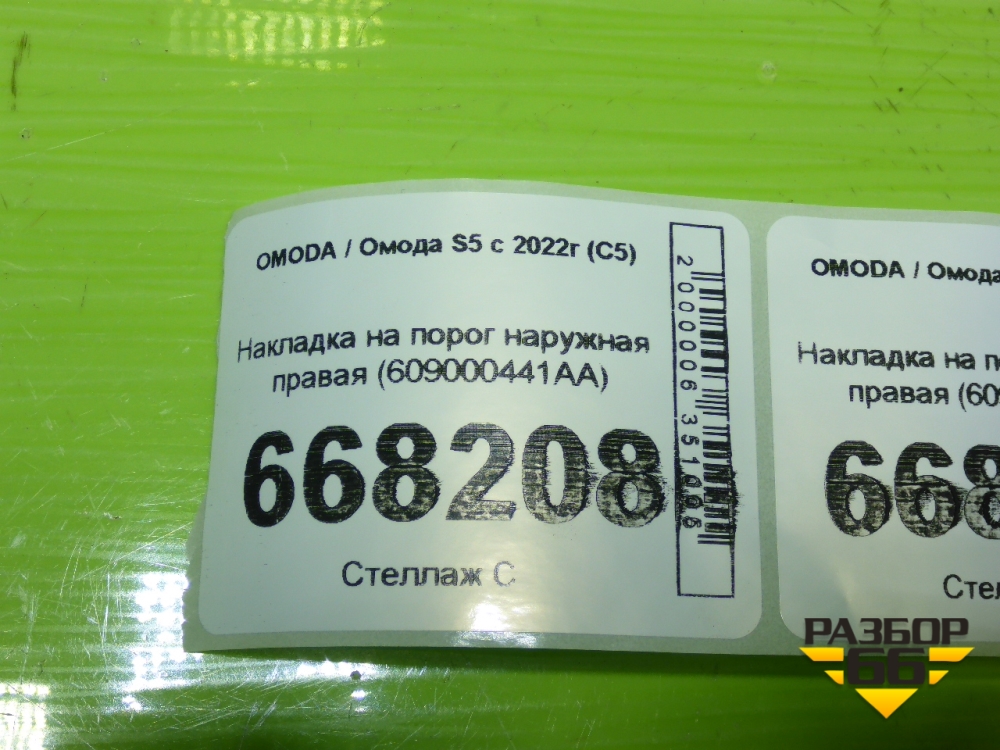 Накладка на порог наружная правая (609000441AA) для OMODA S5 с 2022г (С5) в Перми