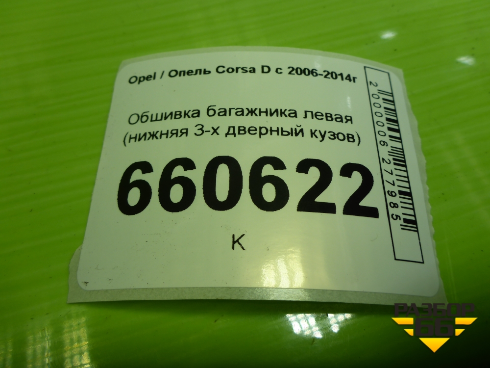 Обшивка багажника левая (нижняя 3-х дверный кузов) (460029937) для Opel Corsa D с 2006-2014г (Корса Д) в Перми