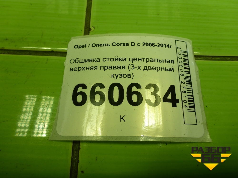Обшивка стойки центральная верхняя правая (3-х дверный кузов) для Opel Corsa D с 2006-2014г (Корса Д) в Перми