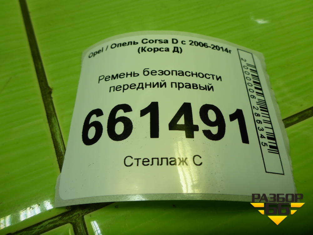 Ремень безопасности передний правый (607707800D) для Opel Corsa D с 2006-2014г (Корса Д) в Перми