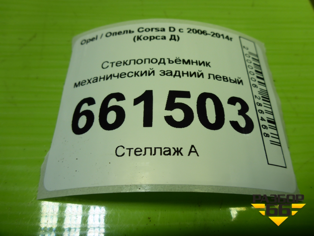 Стеклоподъёмник механический задний левый для Opel Corsa D с 2006-2014г (Корса Д) в Перми