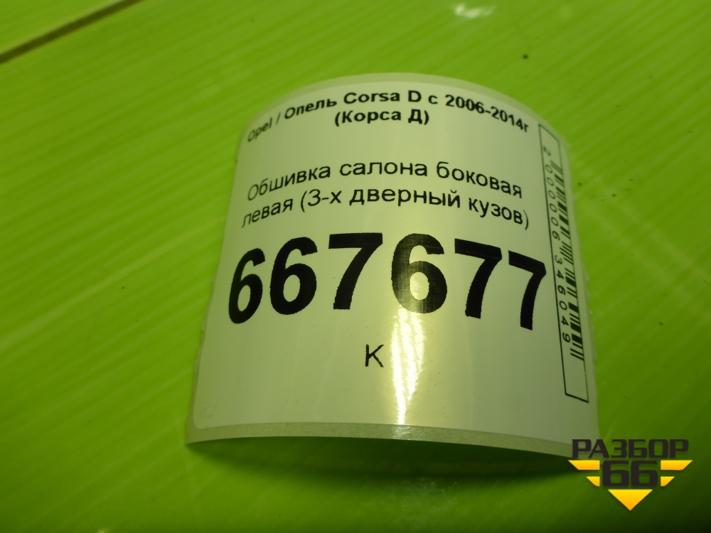Обшивка салона боковая левая (3-х дверный кузов) для Opel Corsa D с 2006-2014г (Корса Д) в Перми
