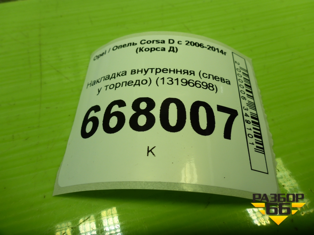 Накладка внутренняя (слева у торпедо) (13196698) для Opel Corsa D с 2006-2014г (Корса Д) в Перми