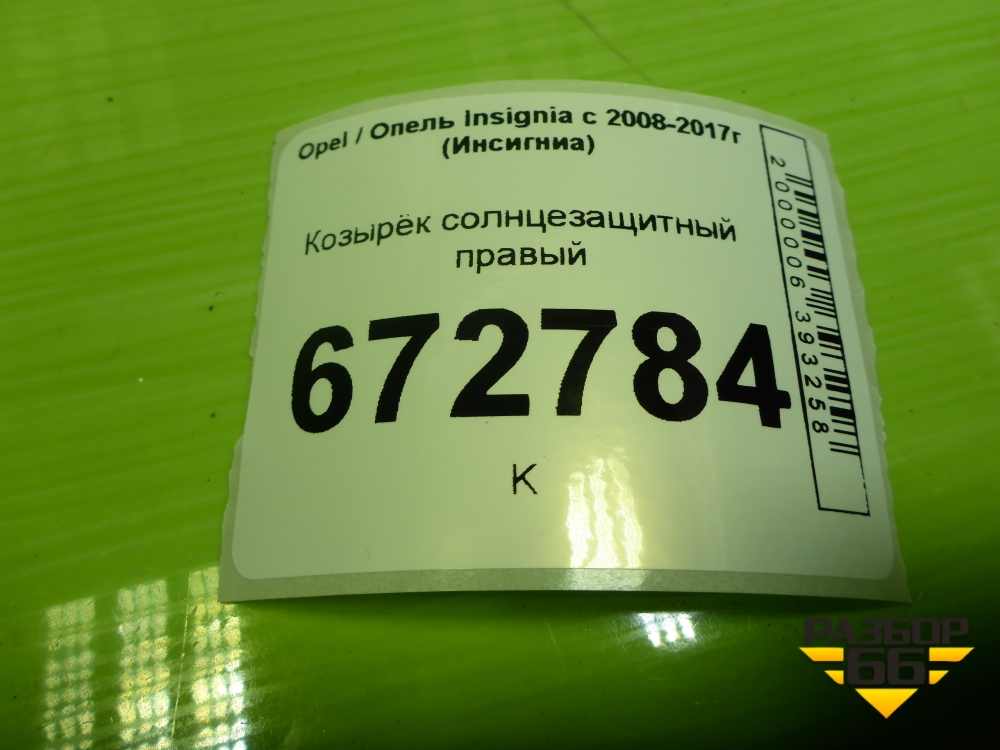 Козырёк солнцезащитный правый для Opel Insignia с 2008-2017г (Инсигниа) в Перми