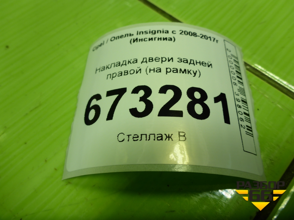 Накладка двери задней правой (на рамку) (13228147) для Opel Insignia с 2008-2017г (Инсигниа) в Перми