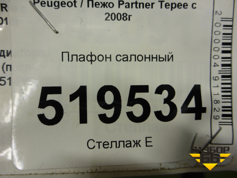 Плафон салонный для Peugeot Partner Tepee с 2008г (Партнер Типпи) в Перми