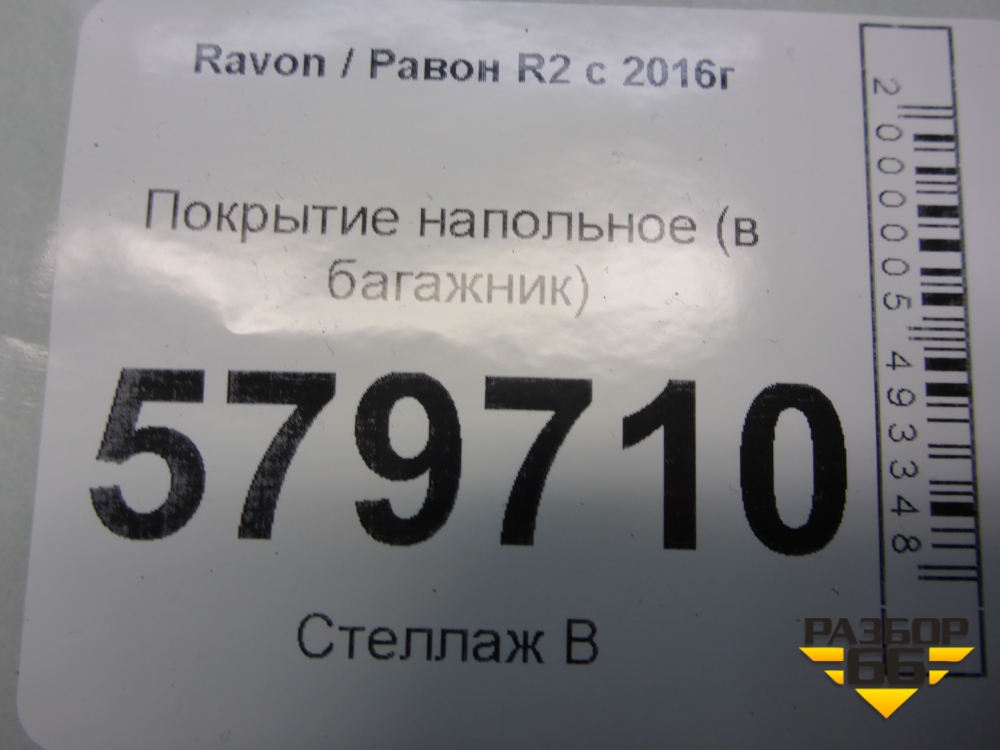 Покрытие напольное (в багажник) для Ravon R2 с 2016г (Р2) в Перми
