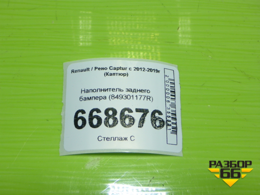 Наполнитель заднего бампера (849301177R) для Renault Captur с 2012-2019г (Каптюр) в Перми