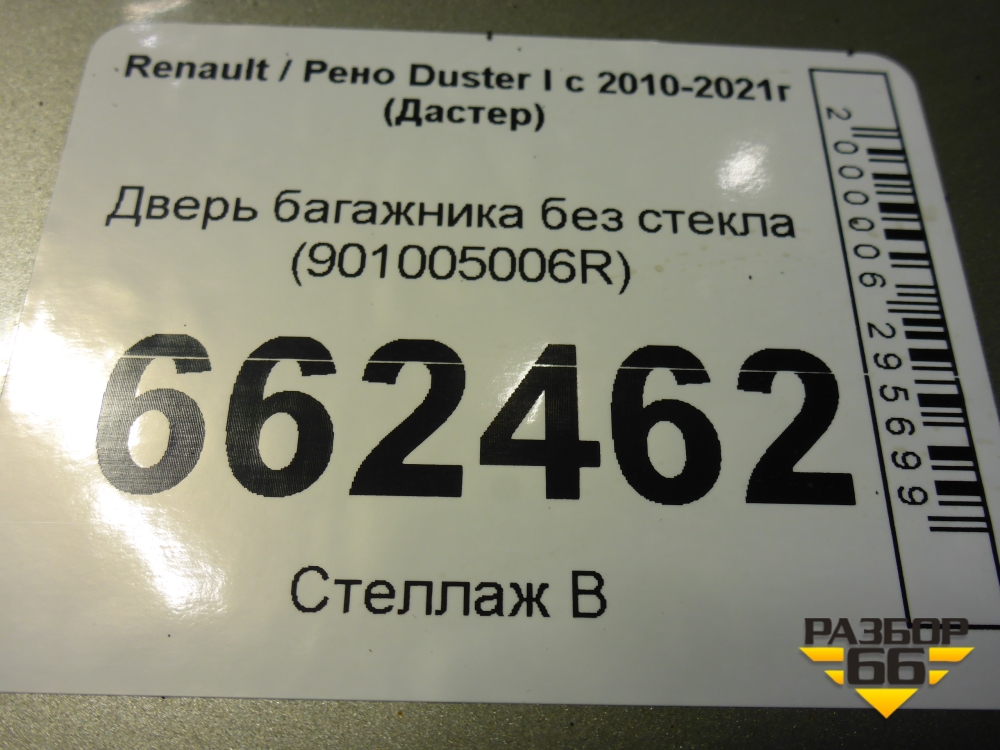 Дверь багажника без стекла (901005006R) для Renault Duster I с 2010-2021г (Дастер) в Перми