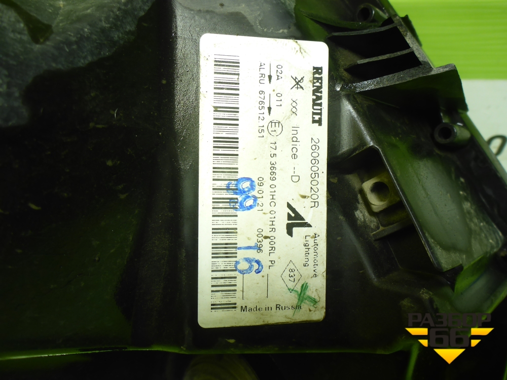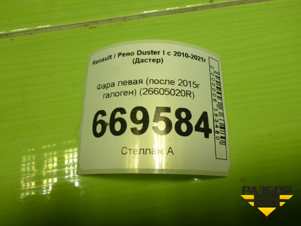 Фара левая (после 2015г галоген) (26605020R) для Renault Duster I с 2010-2021г (Дастер) в Перми