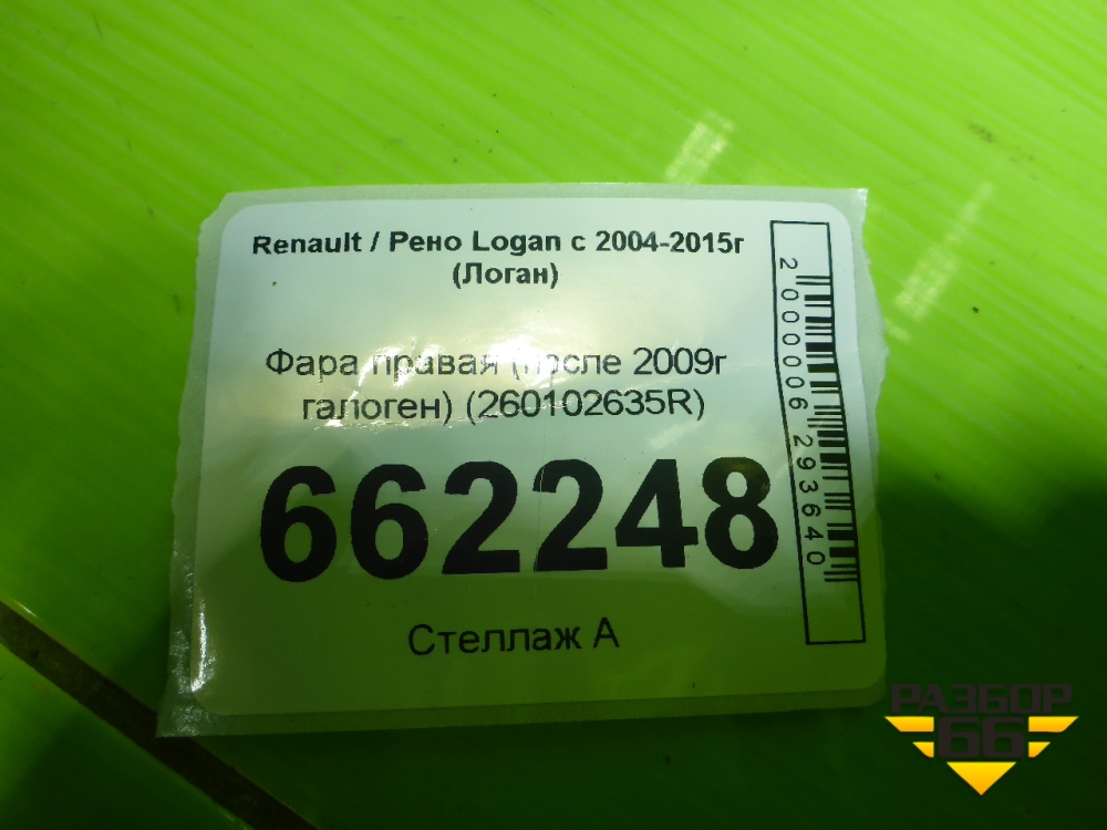 Фара правая (после 2009г галоген) (260102635R) для Renault Logan с 2004-2015г (Логан) в Перми