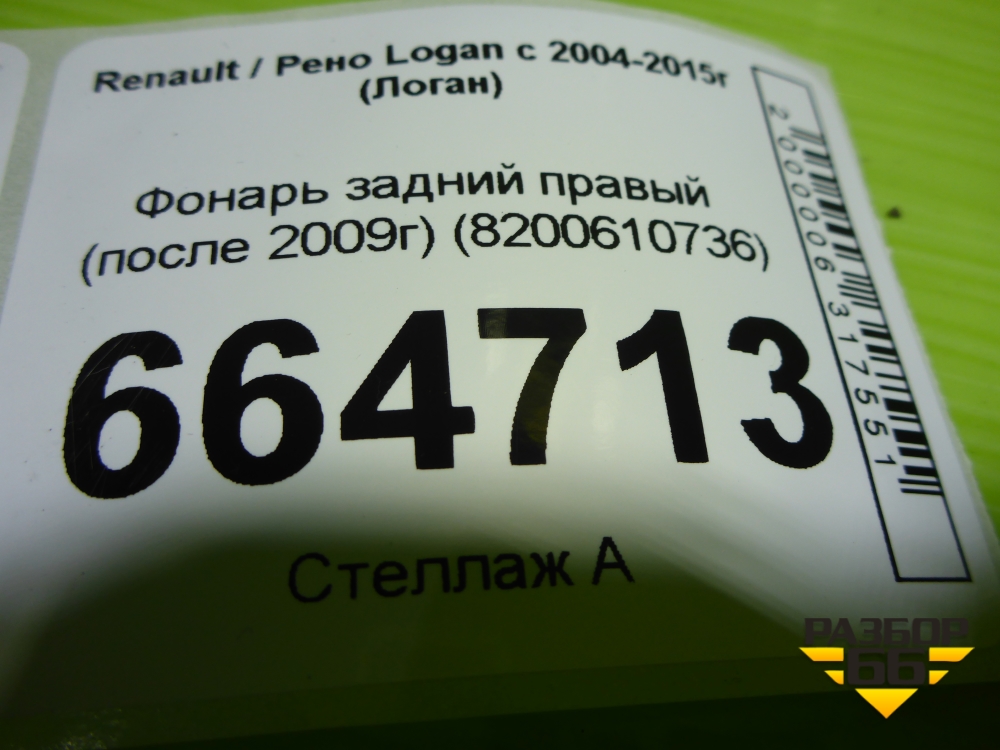 Фонарь задний правый (после 2009г) (8200610736) для Renault Logan с 2004-2015г (Логан) в Перми