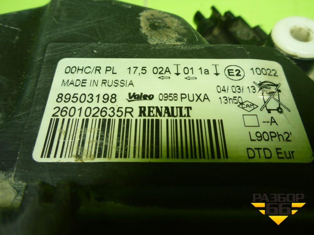 Фара правая (после 2009г галоген) (260102635R) для Renault Logan с 2004-2015г (Логан) в Перми