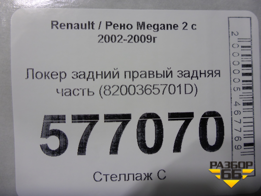 Локер задний правый задняя часть (8200365701D) для Renault Megane 2 с 2002-2009г (Меган) в Перми