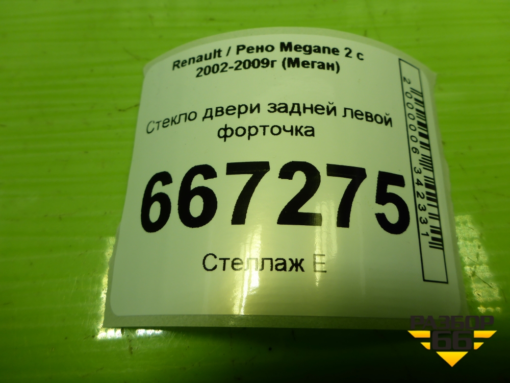 Стекло двери задней левой форточка (седан) для Renault Megane 2 с 2002-2009г (Меган) в Перми
