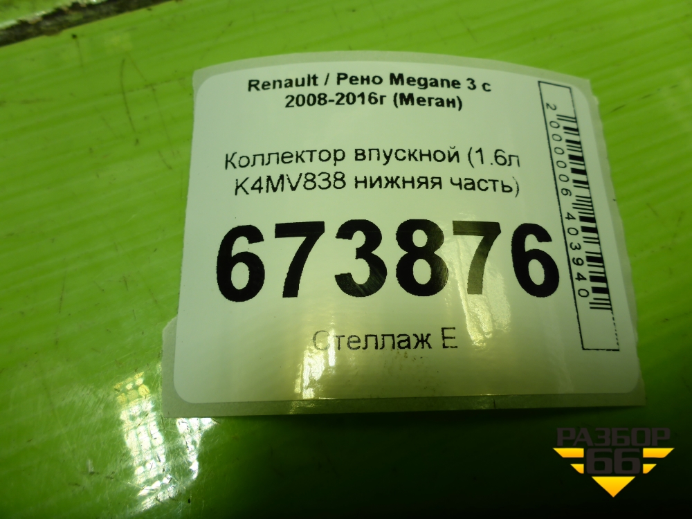 Коллектор впускной (1.6л K4MV838 нижняя часть) (8200329496) для Renault Megane 3 с 2008-2016г (Меган) в Перми