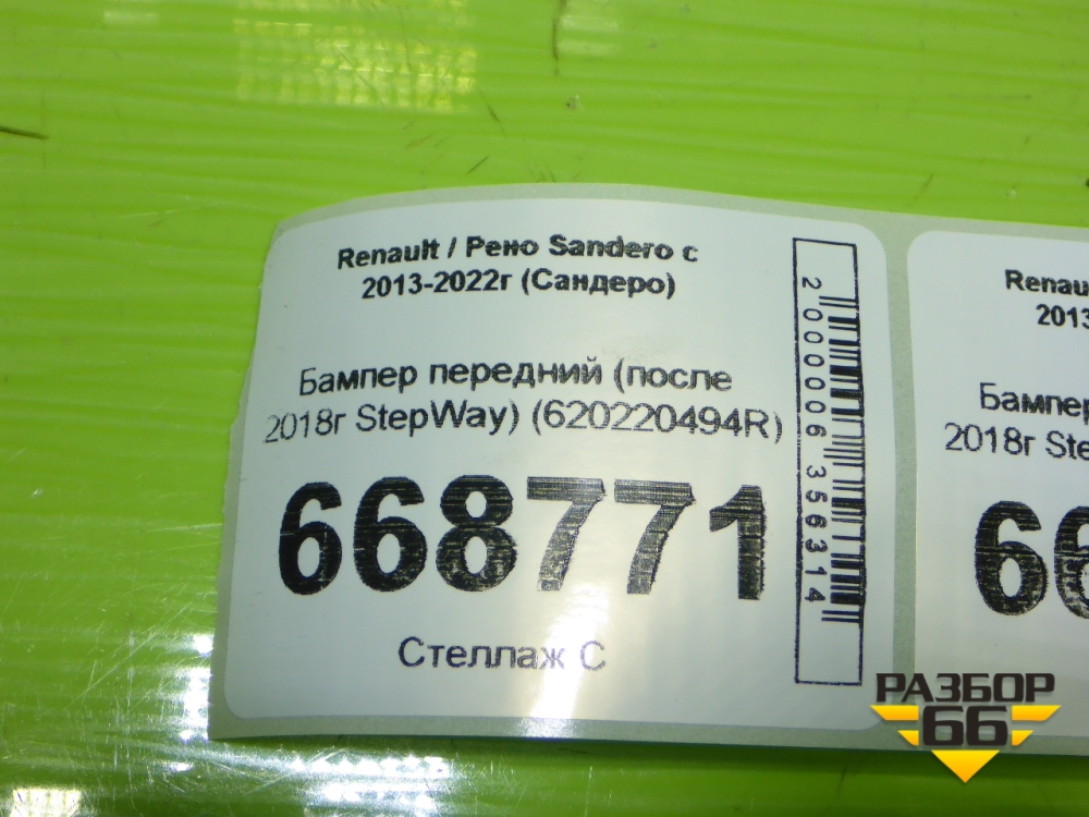 Бампер передний (после 2018г StepWay) (620220494R) для Renault Sandero с 2013-2022г (Сандеро) в Перми
