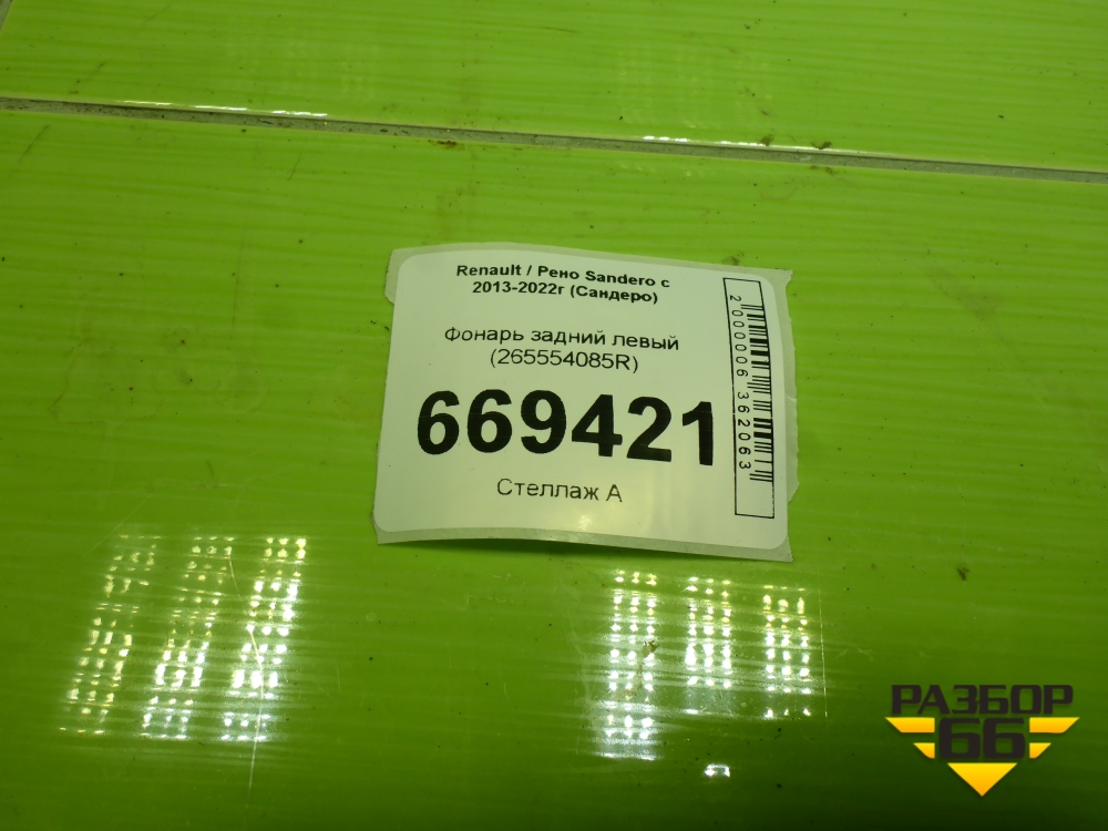 Фонарь задний левый (265554085R) для Renault Sandero с 2013-2022г (Сандеро) в Перми