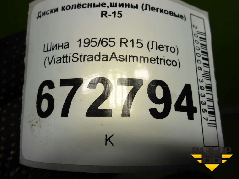Шина 195/65 R15 (Лето) (ViattiStradaAsimmetrico) в Перми