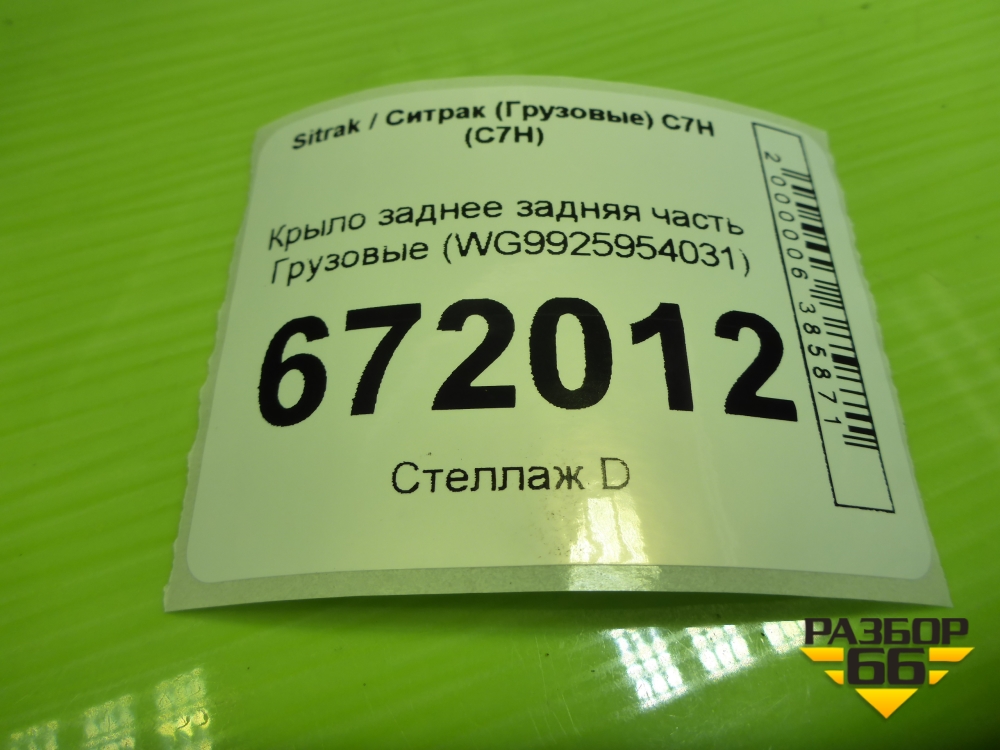 Крыло заднее задняя часть (WG9925954031) для Sitrak C7H (С7Н) в Перми