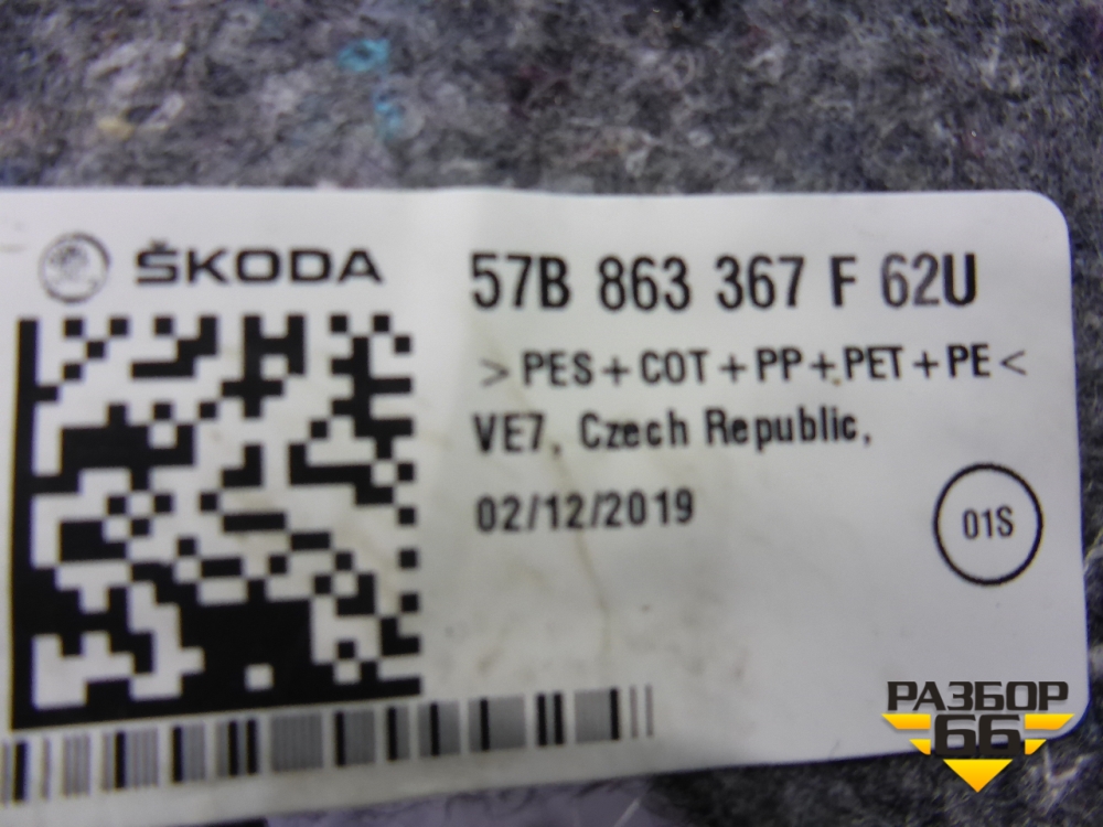 Покрытие напольное (57B863367F62U) для Skoda Karoq с 2017г (Карок) в Перми