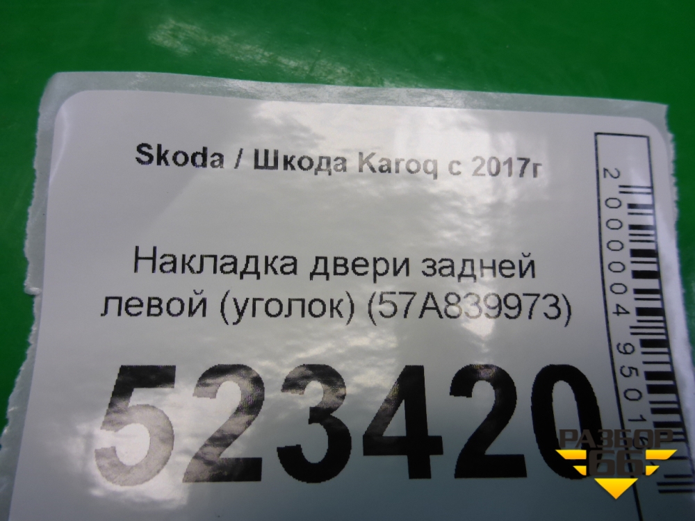 Накладка двери задней левой (уголок) (57A839973) для Skoda Karoq с 2017г (Карок) в Перми